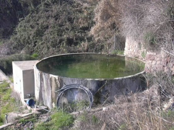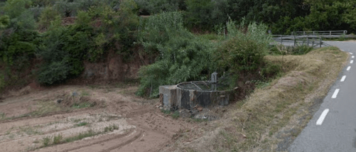 a l’esquerra hi ha una gran dipòsit – bassa rodo d’aigua pel rec de conreus, allí està l’antiga Font de la Vinya d’en Guerxo, que antigament podria tindre un altre nom.