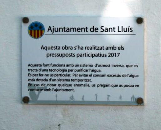 Presentació a Maó, de la primera Font Pública tractada amb el sistema d’osmosi :