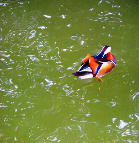 Com a curiositat, en una Masia, vàrem veure que també hi vivia un pato arlekin propi d’Asia, (es van portar molts a Anglaterra i dels escapes alguns criant en llibertat, no esta clar si porten a terme l’emigració… )