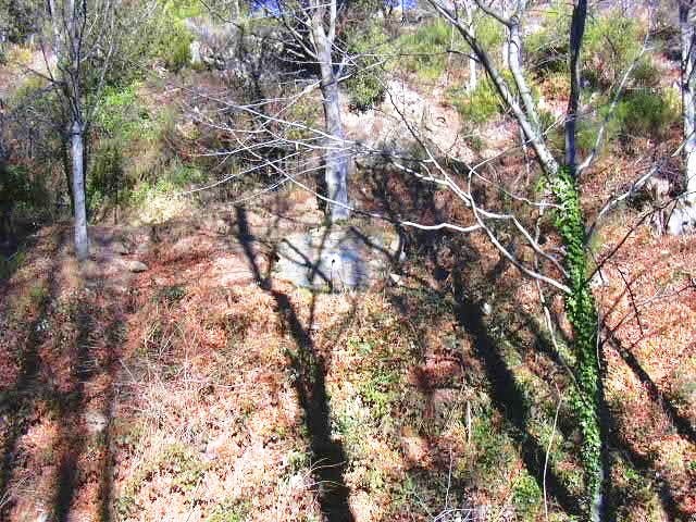 Seguiu la pista uns deu minuts, fins una corba, agafeu un sender més tapat per la vegetació, que baixa al sot de les Agudes , remunteu per el sender, a poc, teniu de fitxar-vos l’altre costar del torrent i a uns 15 metres per de munt, esta la Font d’en Pistola.