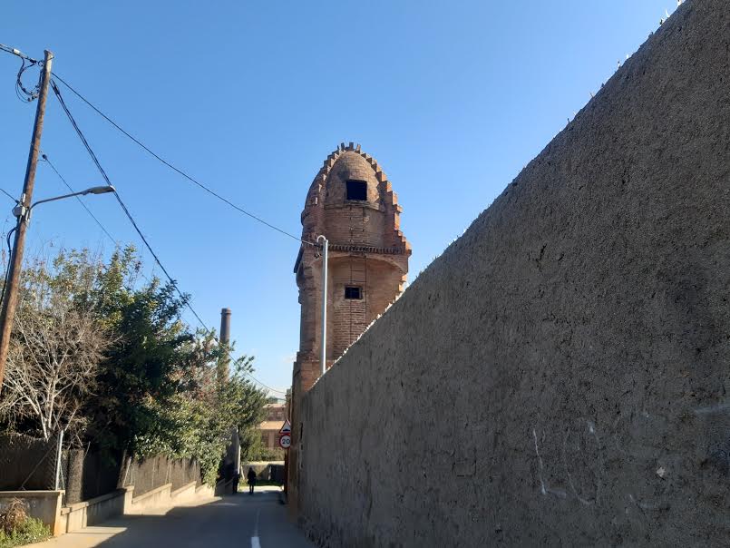 al costat del mur que separa la finca del carrer, en la Colònia Güell del municipi de Santa Coloma de Cervelló.
