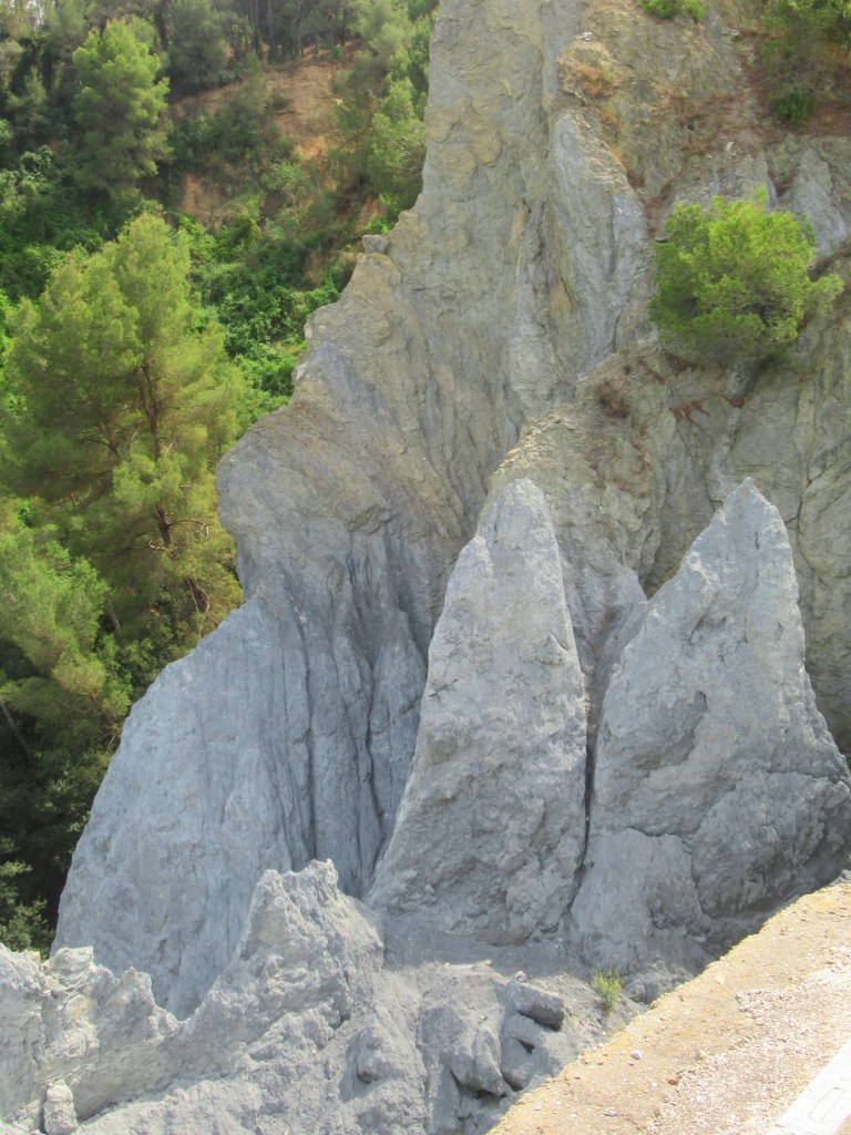 És un aflorament pissarrós amb una tonalitat turquesa a causa de les fortes pressions i temperatures que va assolir durant la seva formació.