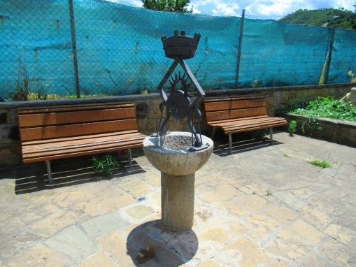 Donat que l’aigua no surt potable, tal com indica un cartell, del broc s’han posat unes barnilles d’acer inoxidable que donen directament a la pica, on aquesta esta amb una tapa, evitant que la gent agafi aigua.