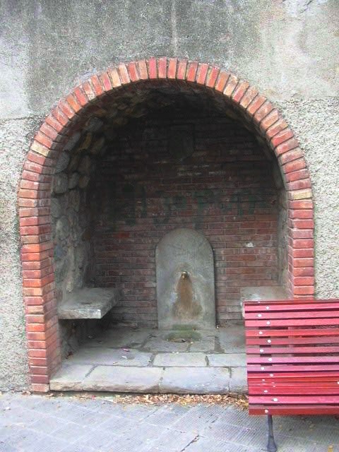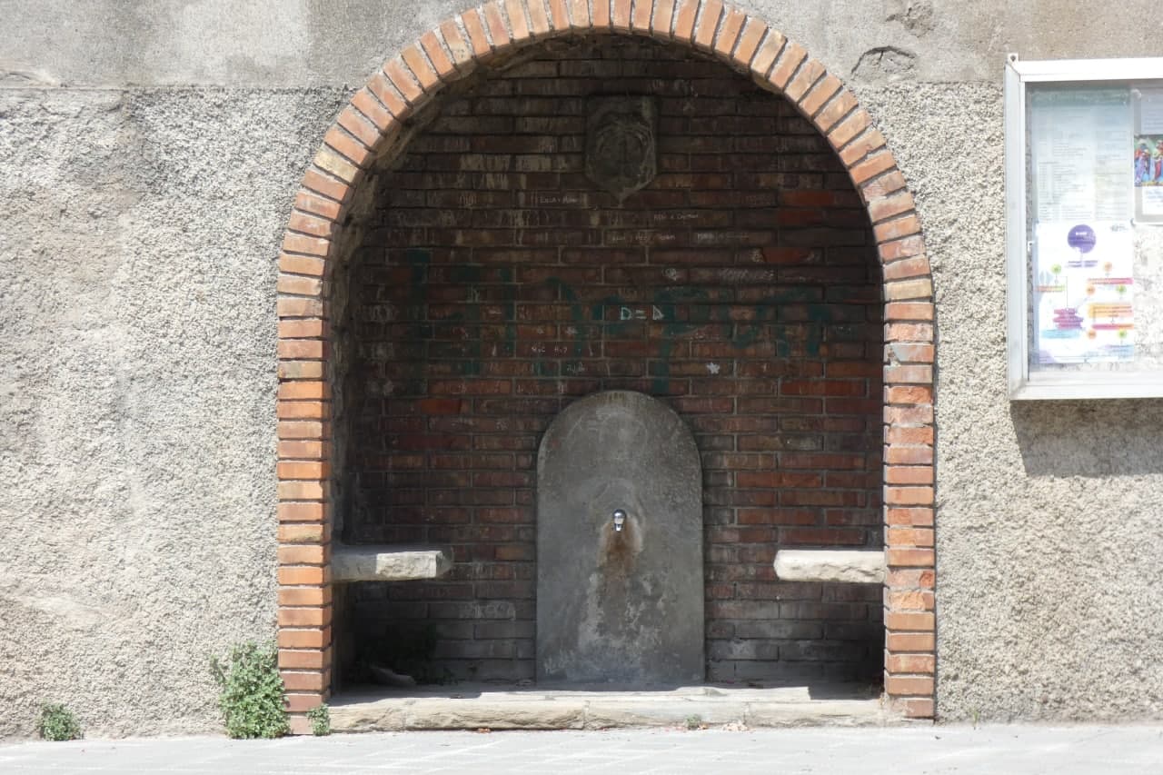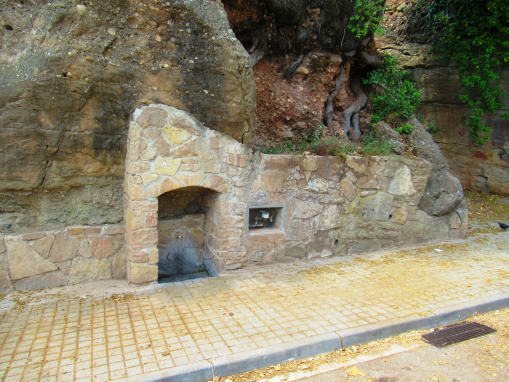 Amb estructura d’obra situada dins d’una arcada i una aixeta de polsador per on surt l’aigua que cau en una pica, és d’aigua de xarxa, a prop seu es pot fer estada gracies a un banc.