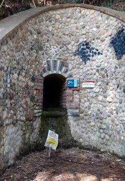 aquesta obertura dona accés a la mina original de la font. L’aigua cau directament al terra per on s’escorre directament mitjançant una reixa.