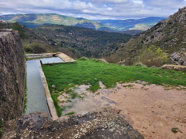 Des de la font hi ha unes fantàstiques vistes de la vall del riu Monlleó.