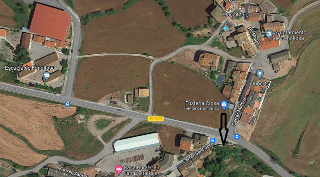 Aquesta Font que ens referim, esta situada en el marge dret del carrer de Sant Jordi al costat de la carretera BV-3008 i front el carrer Major.