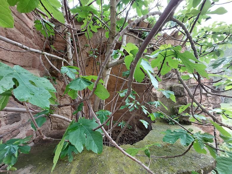 és sec i ven antic, fins i tot, dins hi ha crescut una jove figuera.