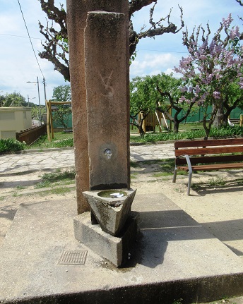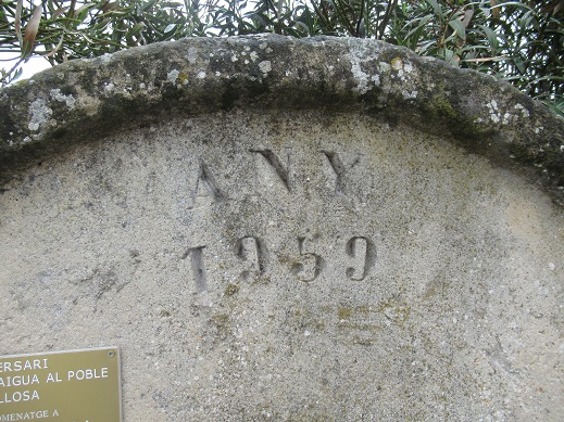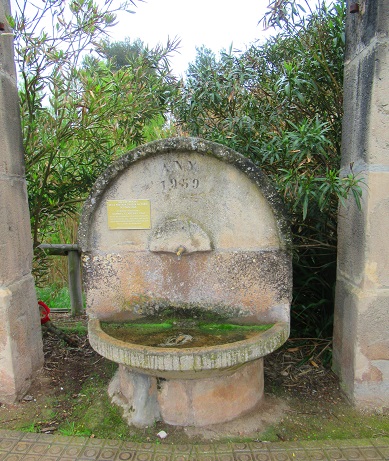 actualment amb una aixeta polsador on l’aigua cau a una pica semi circular; a sobre de la aixeta hi ha la data 1959.