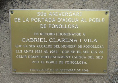La Font és un homenatge a la portada d’aigua a Fonollosa i també, al que va ser alcalde en 1953 al 1964, Gabriel Clarena i Vila, qui va cedir aigua del seu pou al poble de Fonollosa.