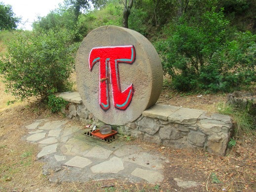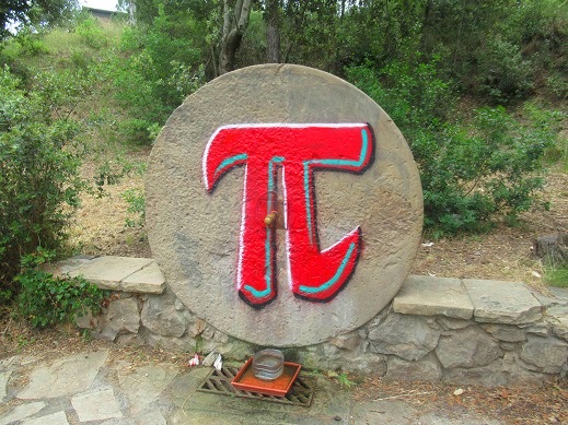 Com podem observar, hi ha pintada la lletra “pi” de l’alfabet grec és equivalent a la nostra lletra “pe”.Des del segle XVIII s’utilitza com a símbol matemàtic-geomètric. Representa una constant: la relació entre la longitud de una circumferència i el seu diàmetre. El seu valor és una quantitat que mai tindria fi: 3,1416… Pi és un número irracional amb aplicacions pràctiques en camps científics tant diversos com la economia, la enginyeria, la física, la química o la cosmologia. La lletra Pi també és utilitzat com a símbol de la Pedagogia. La font de la Pi (no sabem si en realitat es diu així) és una Font simbòlica que ens fa buscar en el rerefons dels nostres coneixements culturals. Podem recordar la pel·lícula de “la vida de Pi”… A mi em ve al cap un altre número el phi dels pitagòrics o la proporció àuria… llegiu al respecte. Les matemàtiques són, com l’aigua, el més pregon de la vida humana.