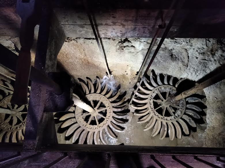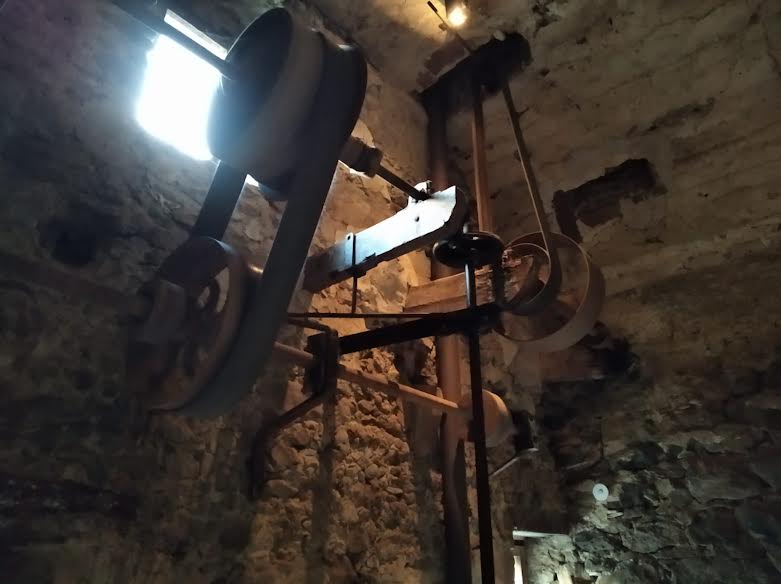 Antigament, a l’eix motriu hi havia unes corretges connectades que feien funcionar un garbellador situat al pis superior; després, la farina baixava a una farinera que es troba a la sala de moles.