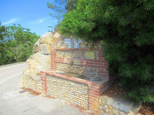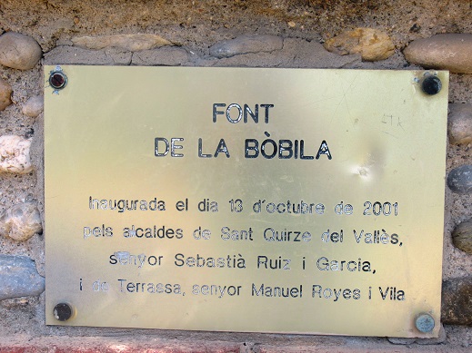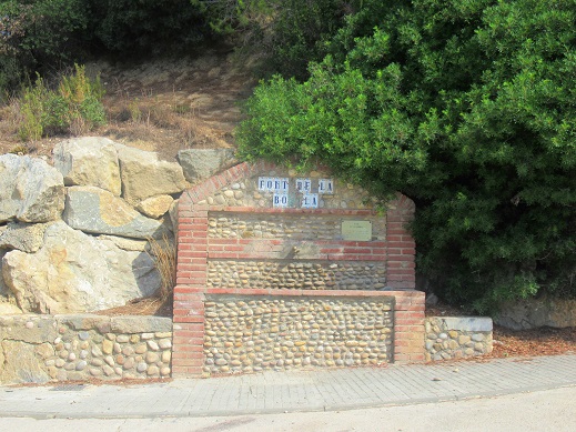 Disposa d’una aixeta de polsador on surt l’aigua de xarxa; a sobre imprès en unes rajoles hi ha el seu nom.