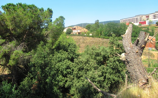 Passareu a tocar de la masia i continuareu el camí, on al poc temps deixareu els camps per entrar a la zona de bosc a tocar de l’antic Hospital del Tórax.