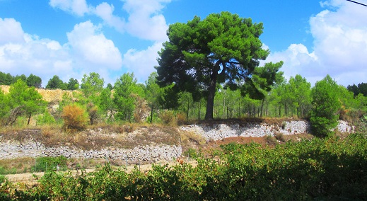 Tot abans d’arribar al pèlag Gran, en Vilobí del Penedès, a la dreta del camí i a un nivell més alt, hi ha aquest destacat Pi.