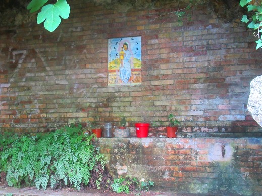 Sobre la font, la imatge de la Verge amb el nen, on llegim: “ L’Artiga 24 de Setembre del 1961” (L’Artiga es la masia propera)