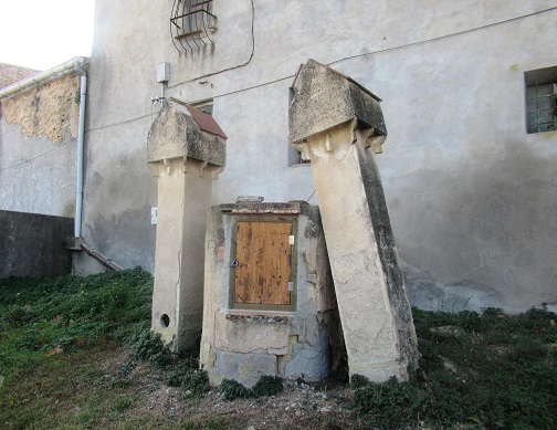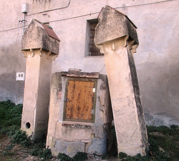 El pou esta al costat de la paret lateral que dona al camí, disposa d’una portella de fusta i curiosament esta al mig de dues columnes.