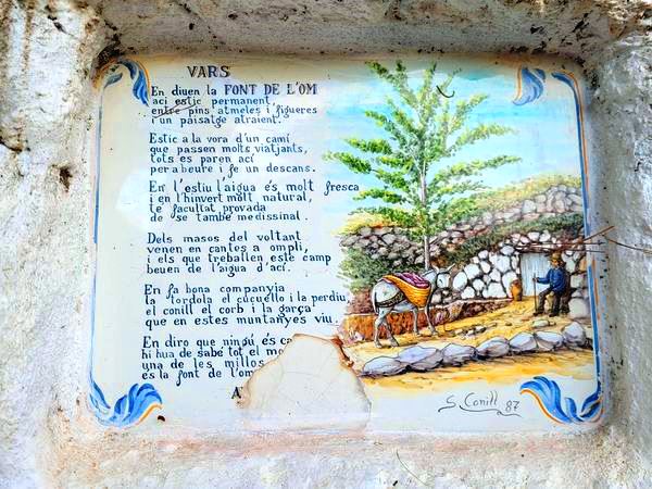Com moltes altres fonts del terme municipal de Llucena, té un vell taulell ceràmic en el que hi ha escrits uns bonics versos dedicats a la font.