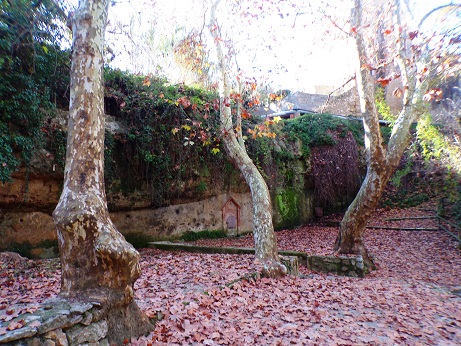 Font situada enmig d’una petita cinglera de 5-7 m. d’alçada, la paret natural està plena de concavitats en forma de cova.