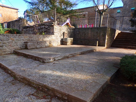 En cada costat hi ha un seient de la mateixa obra fet tot de pedra.