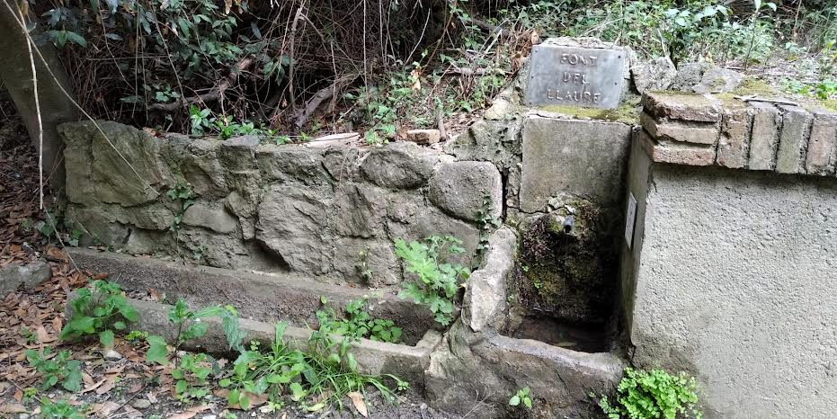 Un cartell sobre la font, ens indica que també te el nom de la Font de Llaure…