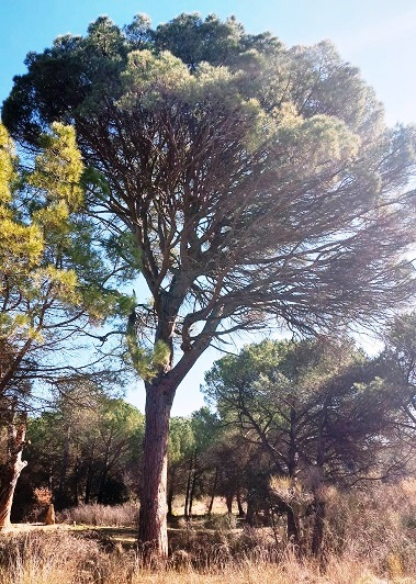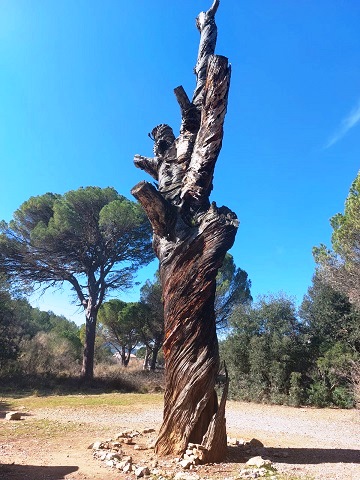 El Pi gros era un pi majestuós, però va morir fa uns anys, sols queda el tronc sec.