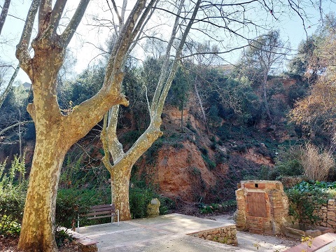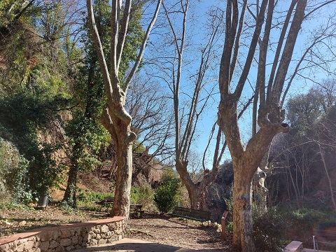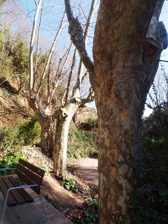 Agrupació de plàtans al costat de la llera del torrent de l’Illa i de la font de la Mare de Déu.
