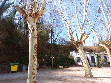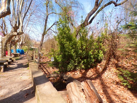La zona de la font és una explanada antropitzada i utilitzada com a zona d’esbarjo periurbà, amb plantació de plataners i amb una zona lúdica amb taules i cadires d’un establiment comercial.