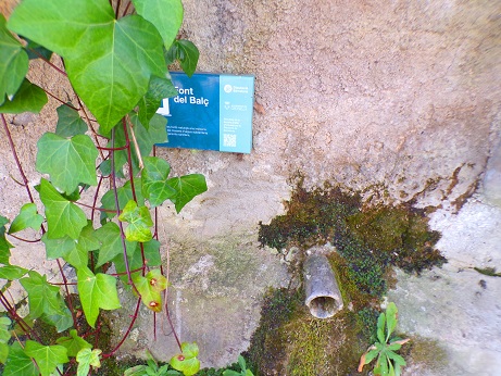 La vegetació d’heures cobreix part de la capçalera de la font. Hi ha una placa de llauna amb el nom de la font.