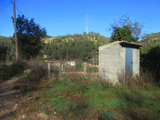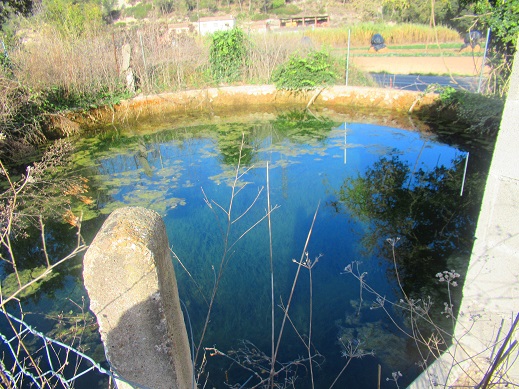 Només entrar a mà dreta, en direcció als camps de Sant Jaume, ja es veu una caseta feta amb carreus de ciment modern aixecada damunt d’una solera de ciment; al darrera seu una bassa de planta circular, arran de terra, tancada amb un filat de galliner.