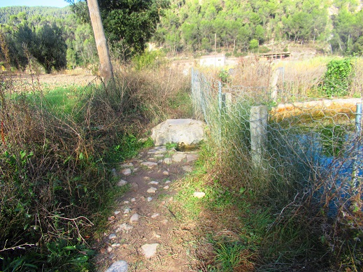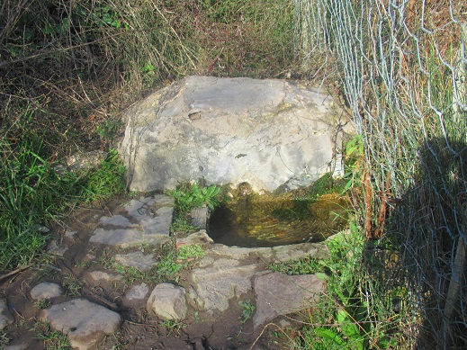 Fora del filat, arran de terra, hi ha un petit caixò fet de ciment i maó, que protegeix el tub interior que condueix l’aigua fins aquest indret.