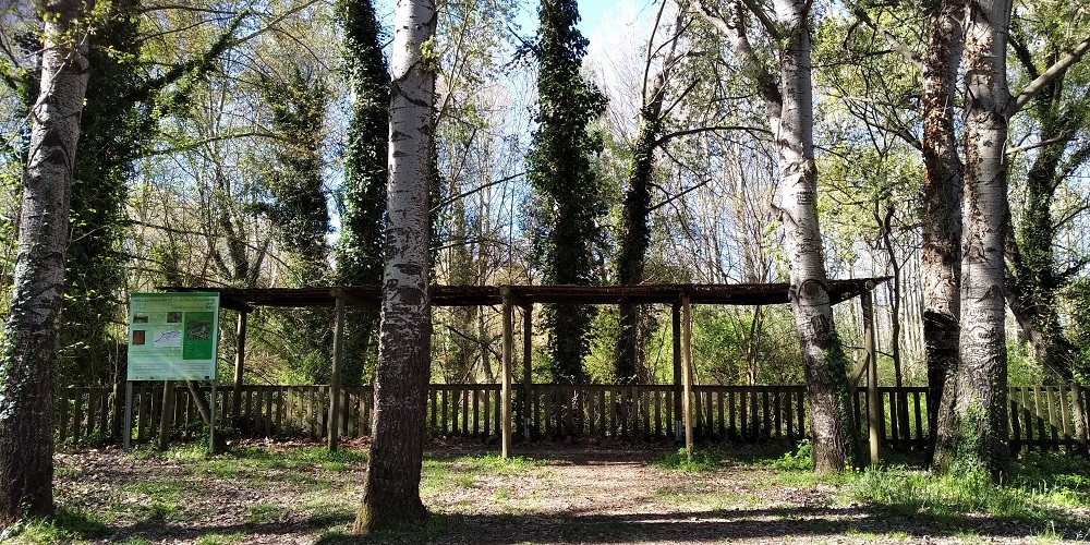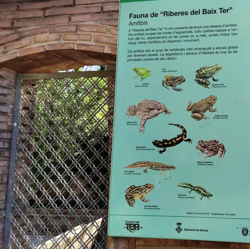 Hi ha un cartell sobre els amfibis de la zona, considerada con espai natural.
