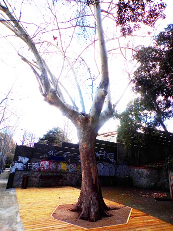 Entre la Font i la Bassa, hi ha el Plataner centenari.