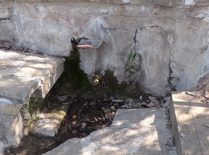 Sobre el dipòsit hi ha construït un petit mur de blocs de ciment, una filada només, per tal de facilitar que la terra que es va desprenent del marge no tapi l’estructura.