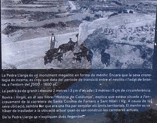 La Pedra Llarga és un monument megalític en forma de menhir que encara que de cronologia incerta es podria atribuir al moment cultural anomenat calcolític o eneolític a l’entorn del 2500-1800 aC,