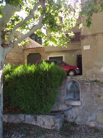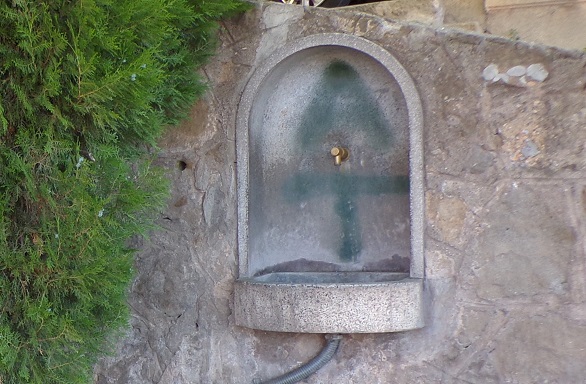 en la paret del camí o passatge de la Cova, dins d’una fornícula hi ha una aixeta polsador, l’aigua cau a una petita pica. Està sota d’un plataner que li dona ombra.