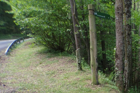 poc abans d’arribar al Balneari de la Font Picant, hi ha un camí a l’esquerra, amb un cartell indicador,