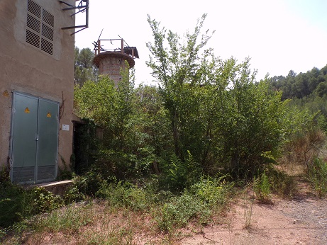 En primer lloc, trobarem un antic repartidor elèctric. Al seguir un metres més a munt, hi ha una gran nau i al costat la Torre d’Aigua.
