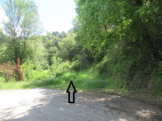 a uns 170 metres a l’est del pont del Collet, baixa una pista al fer la corba,