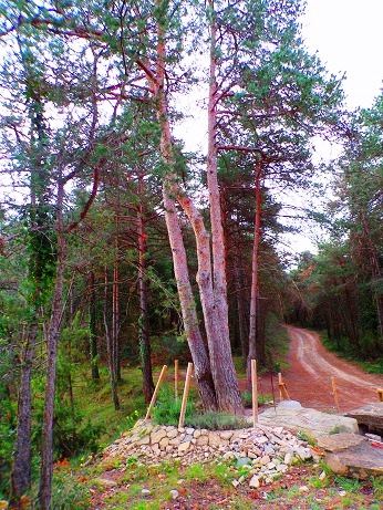 Per anar a la Font de Casa nova de Dalt, cal sortir de la masia de Serratosa, per la pista que puja fins la Roca Coralina i el mirador del Grau de Serratosa amb amplies vistes del municipi, i que us vaig fer un article fa uns dies. Seguiu la pista fins girar per un camí que us portaria a Sant Martí Xic, allí mateix hi ha el Pi de les Tres Branques.