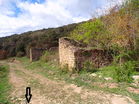 En aquest punt cal baixar per la pista de la dreta, fins arribar a les runes de la masia de Casa Nova de Dalt.