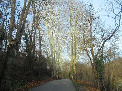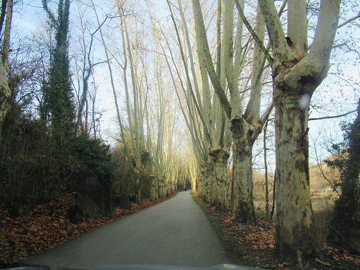A l’altura de la resclosa, comença una renglera de plataners en cada costat de carrer.