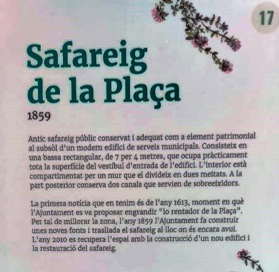 - El safareig del carrer de Santa Oliva encara existeix, tot i que només es fa servir per regar.