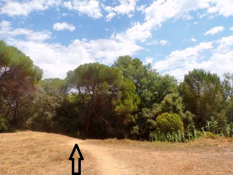 en aquest punt, cal anar per un camí que entre al bosc d’alzines i de pins.