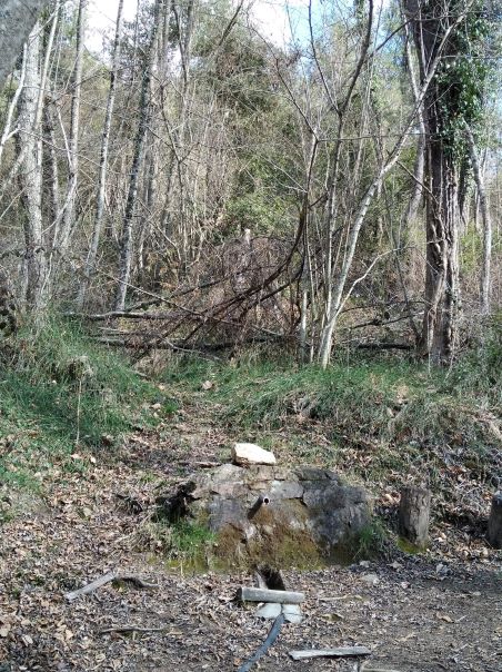 Del mur adossat a la paret de la muntanya, surt un broc d’acer on raja l’aigua que cau a una pica de pedra. Al costat dret de la font disposeu de tres troncs d’arbre que fan de seients per fer un descans.