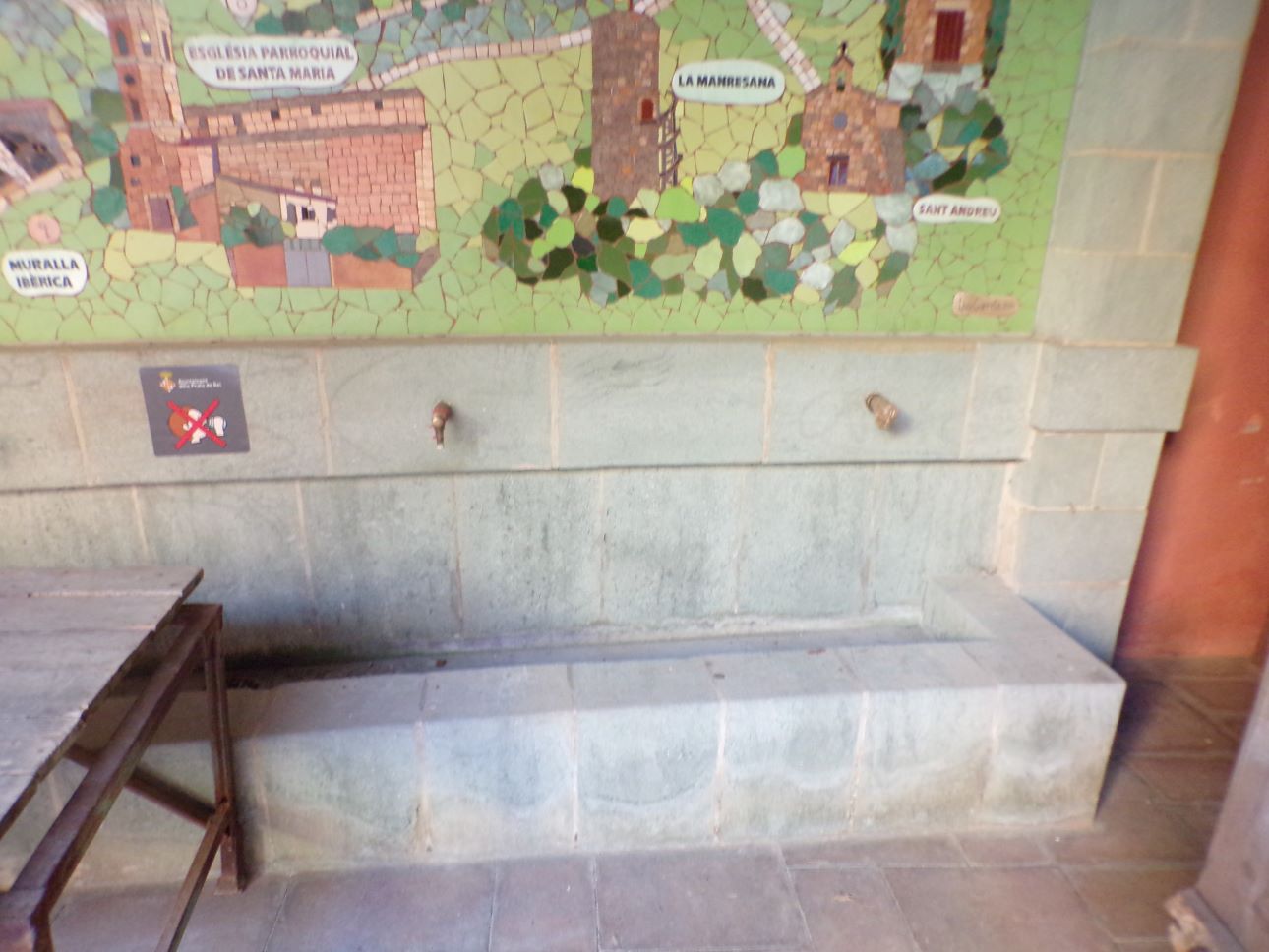 Disposa d’un gran abeurador fet amb blocs de pedra molt ben escairats i a la paret s’hi ha disposat un gran mural ceràmic, també emmarcat per blocs de pedra escairats, amb el plànol de la vila i del seu terme municipal, i els principals punts d’interès històrico-turístics.