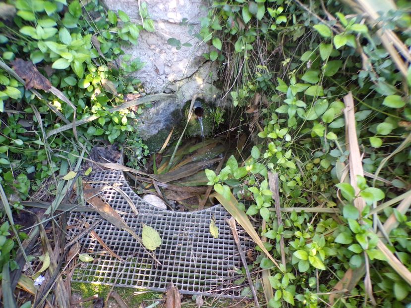 D’una paret, surt un tub gruixut on l’aigua cau al terra,