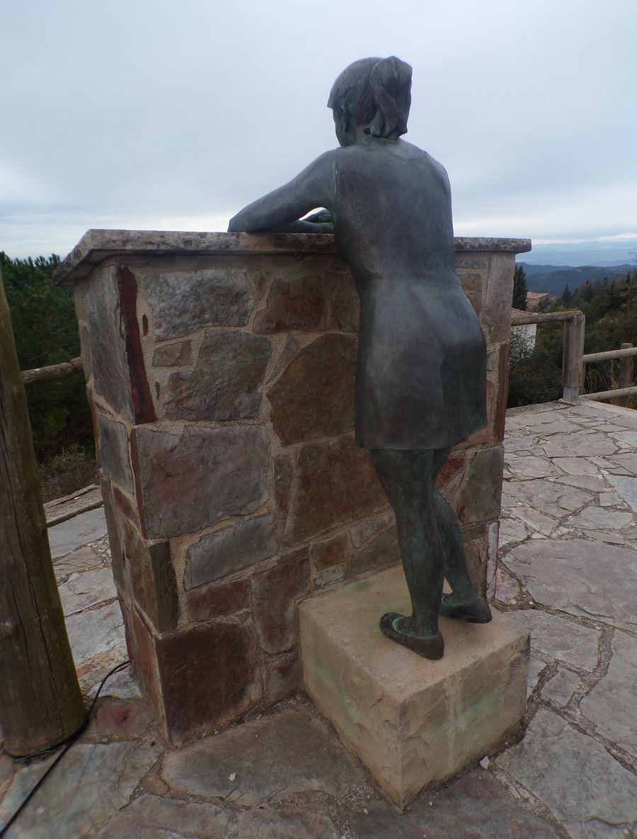 A la part amb més alçada hi ha l’escultura de la Nena i un plafó metàl·lic senyalitzat amb les muntanyes i els cims que es poden observar des d’aquest enclavament (Montserrat, Sant Llorenç del Munt, etc.).