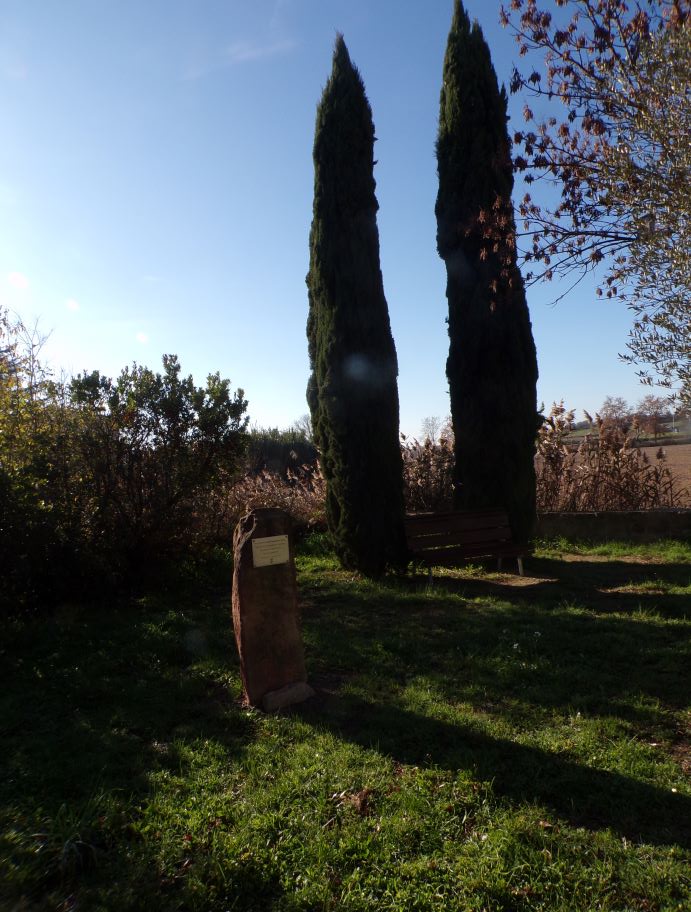 Es tracta d’un petit monument commemoratiu, fet amb un sol bloc de pedra de sauló local de vetes verdoses i vermelles. Mesura 1’5 m d’alçada, està tallat amb forma rectangular i mostra l’extrem superior lleugerament irregular. L’acompanya una petita placa metàl·lica quadrangular situada a la part frontal superior del monòlit que conté inscrits els detalls descriptius del motiu del monument i la data de la seva inauguració.