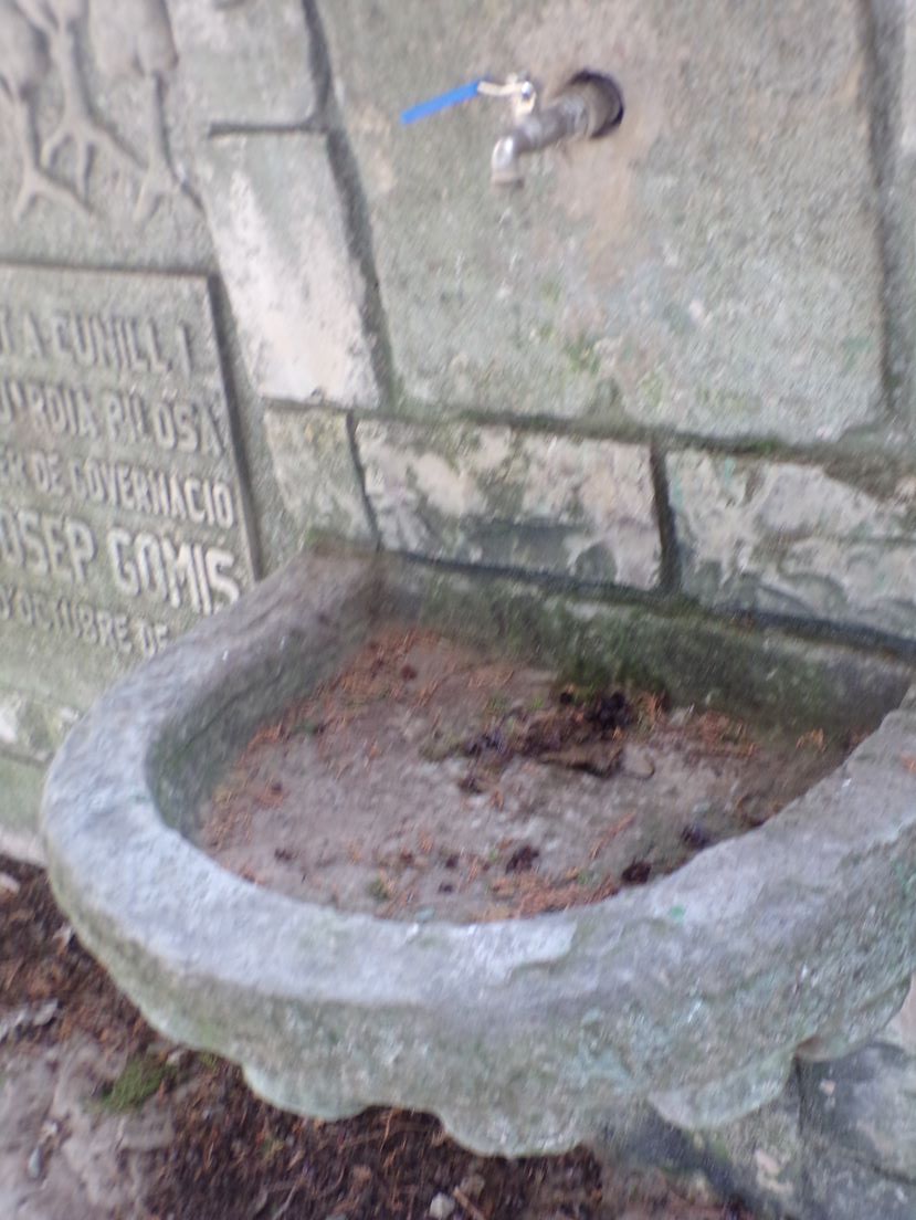 Font de pedra d’estructura rectangular que té la part central més elevada. En aquesta hi ha fixada una aixeta metàl·lica, sota la qual hi ha una pica semicircular de pedra.